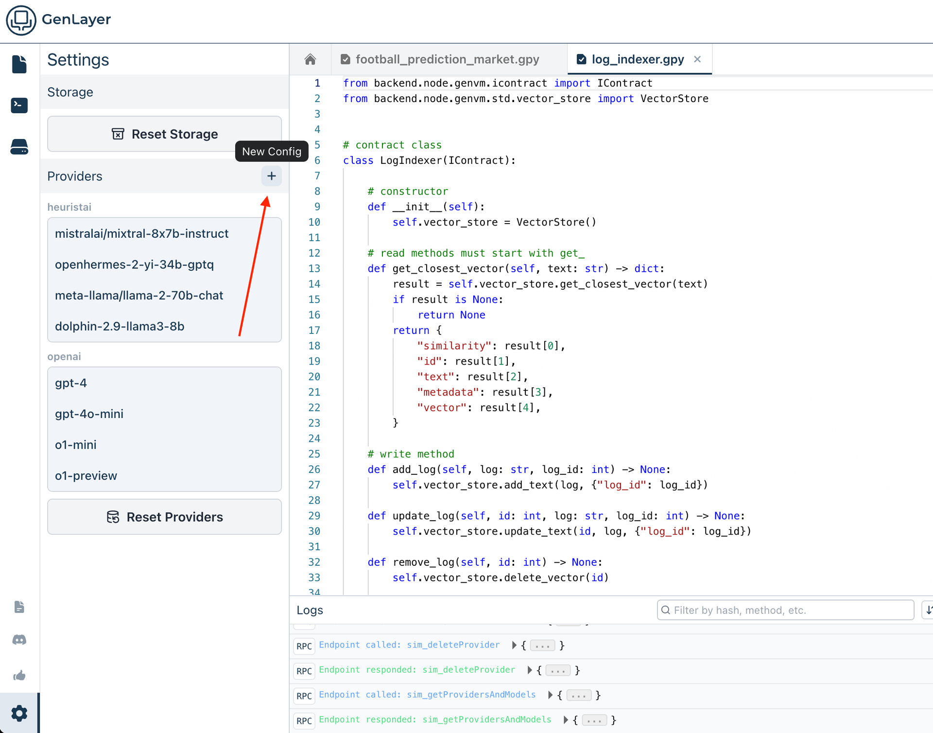 You can add a new provider by clicking the New Config button at the top of the providers list.