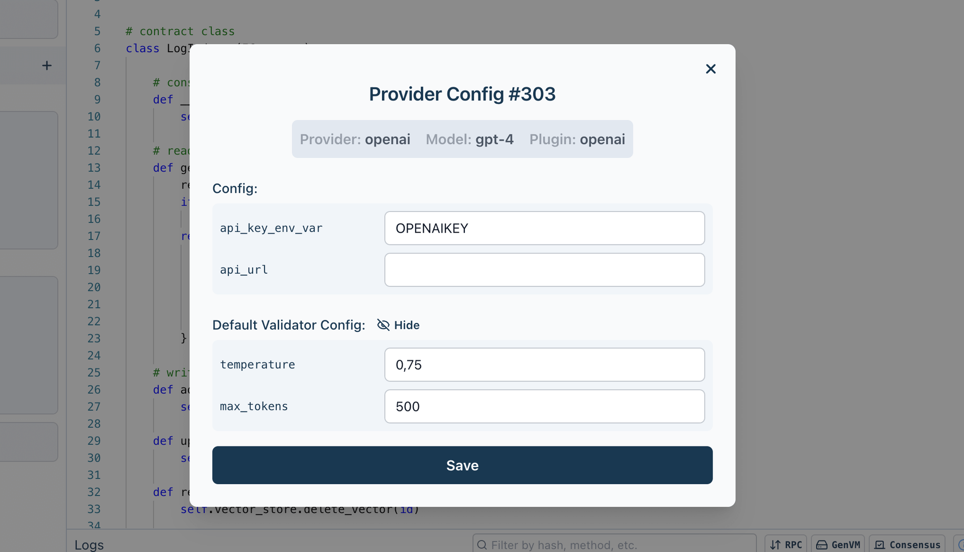 • Default Validator Config: This config is used as default when creating a new validator, and will then be applied when making calls to inference providers using said validator.